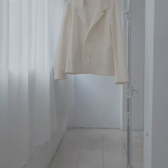 落肩的設計、七分袖,是一款四季都可以穿的繭型外套。